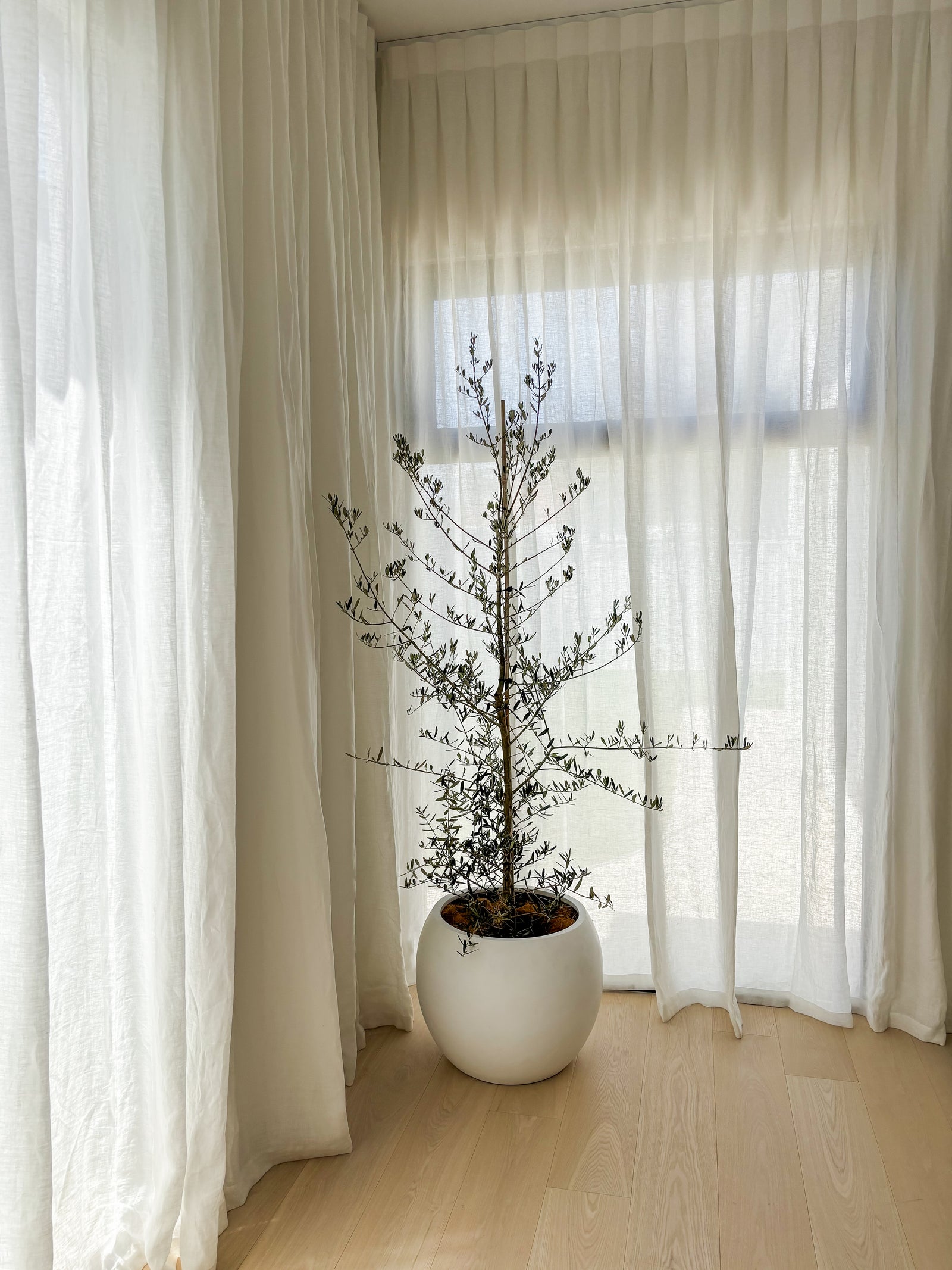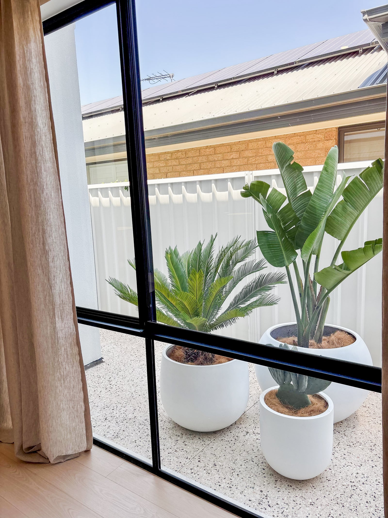 Working alongside the styling team, we curated a selection of Olive trees, Sansevierias, cacti and structured foliage to complement the home’s warm tones and modern architectural details.